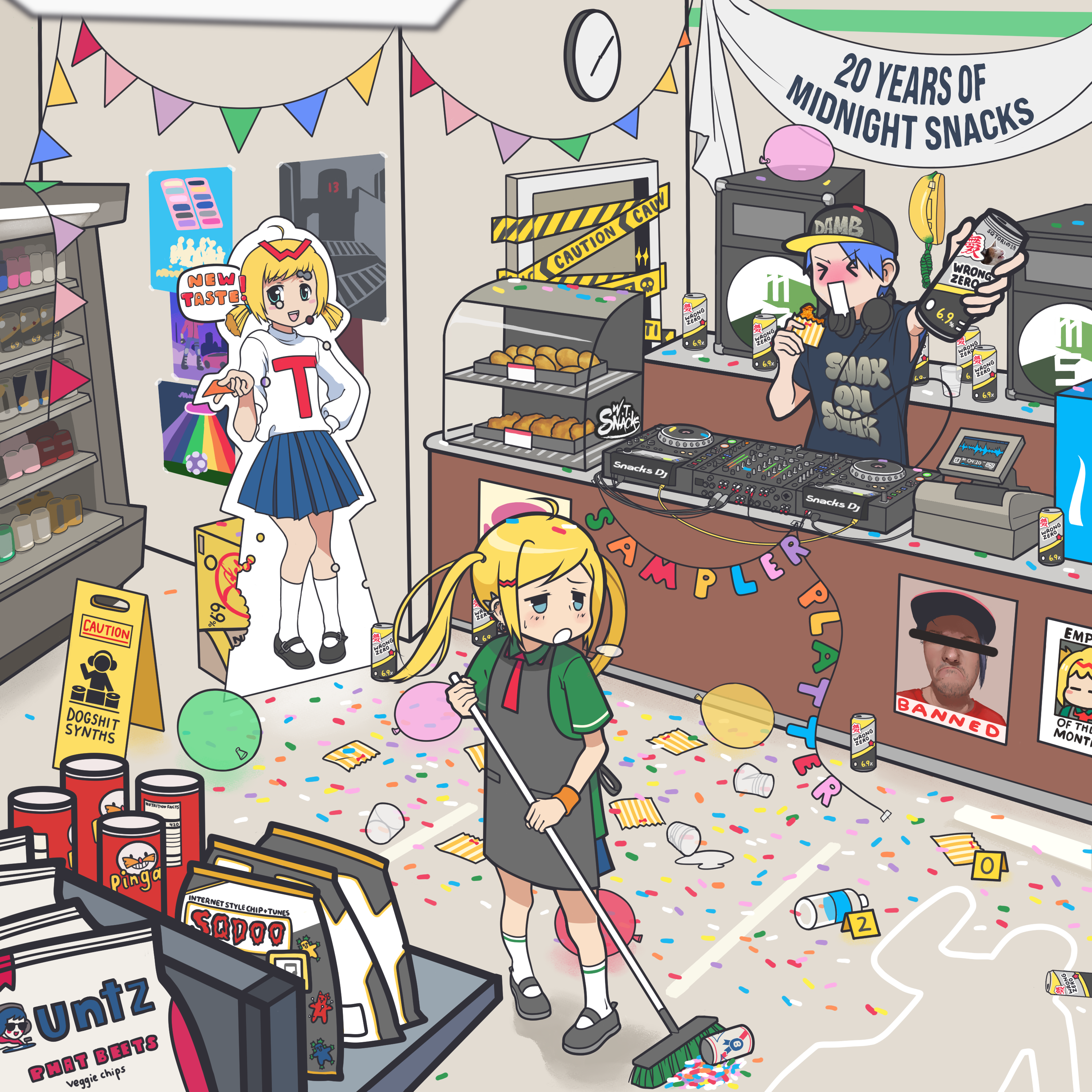 Both solo and as half of the DJ duo SNACK ATTACK with DJ HYPE☆GIRL (aka Beck Attack, the de facto in-house illustrator for Midnight Snacks), he's spent much of the past half-decade taking the IRL anime and gaming convention scene by storm, performing live sets at dozens of conventions like Anime Central, Anime Expo, MAGFest and beyond. The internet has always been his home though, and he's performed nearly 100 online and VR events since 2020 alone.